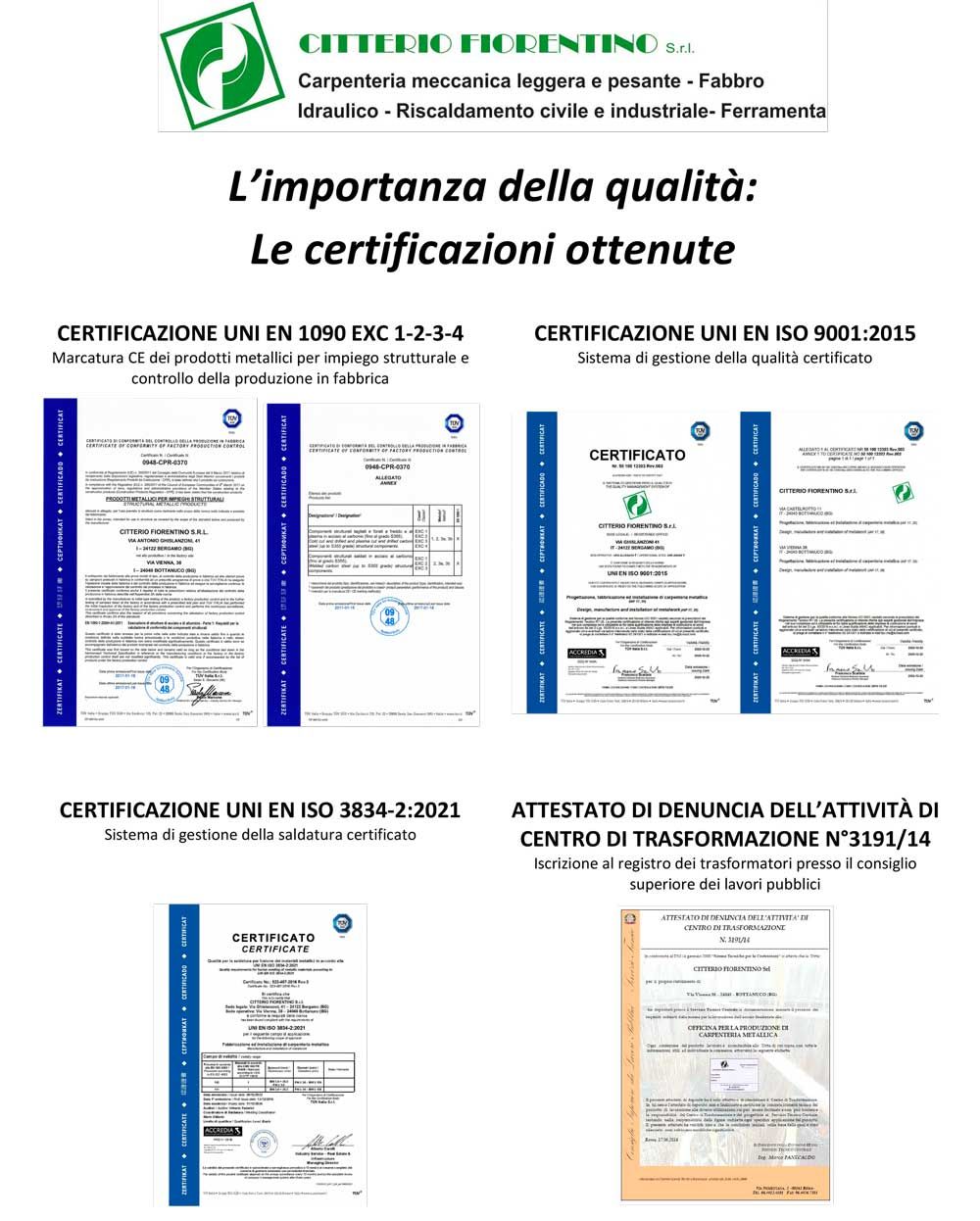 The importance of quality has led our company to obtain 4 forms of certification: